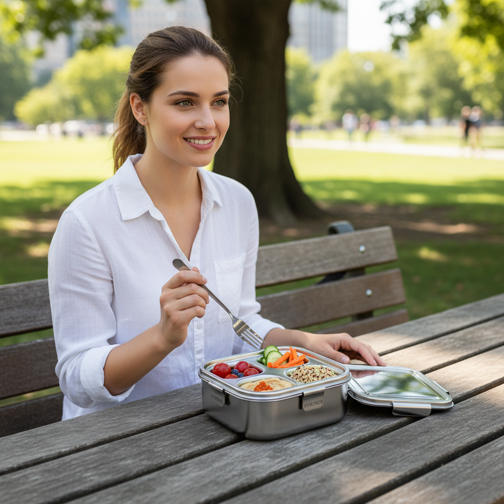 Vyntros Stainless Steel Bento Box - Leakproof 3-Compartment Lunch Container