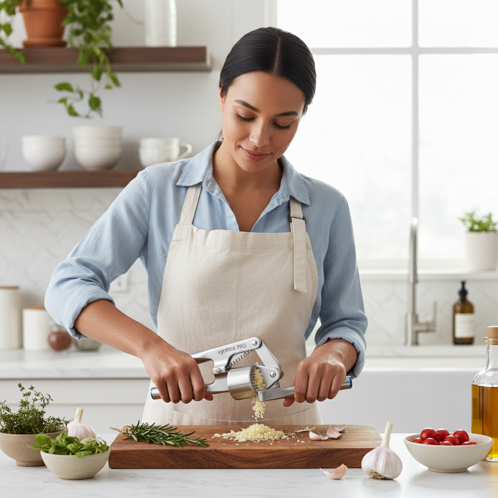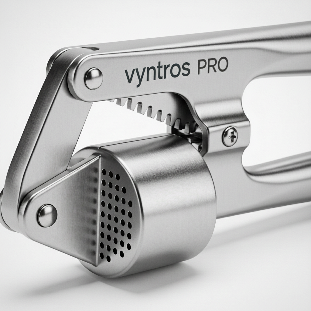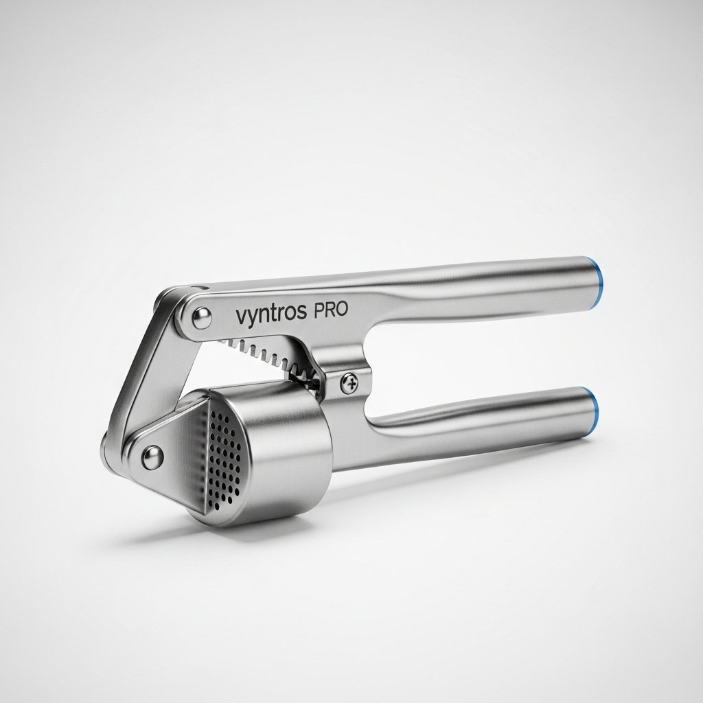Elevate your culinary creations with the Vyntros Pro Stainless Steel Garlic Press. Engineered for efficiency and durability, this essential kitchen tool transforms garlic cloves into a perfect paste with minimal effort. Its modern, ergonomic design not only looks great but also provides maximum comfort and control.